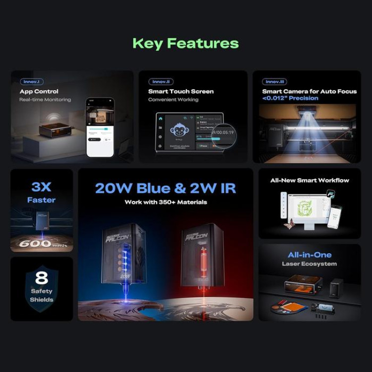 Creality CR Falcon A1 PRO 20W + 2W IR Laser Cutting and Engraving CoreXY 3 Times Fast with HD Camera Auto Positioning