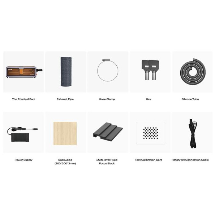 Supported Materials: Cardboard, wood, bamboo, rubber, leather, fabric, acrylic, plastic, etc.