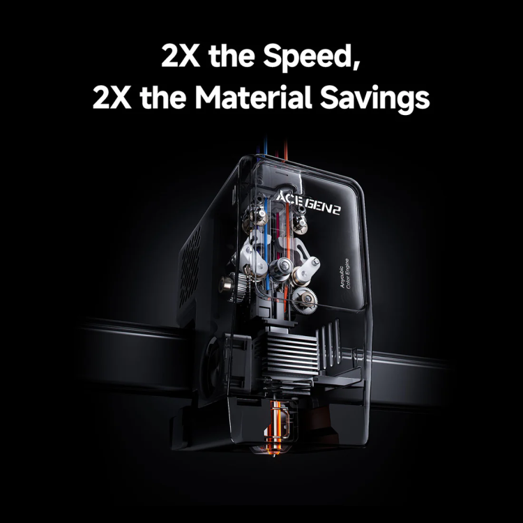 - Menggunakan ACE GEN 2 proses print multi color lebih cepat dan pembuangan filament poop lebih sedikit