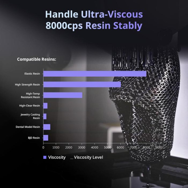 - Engineered for Ultra-Viscous 8000cps Resin, bisa pakai lebih banyak jenis resin, dan bisa print resin dental