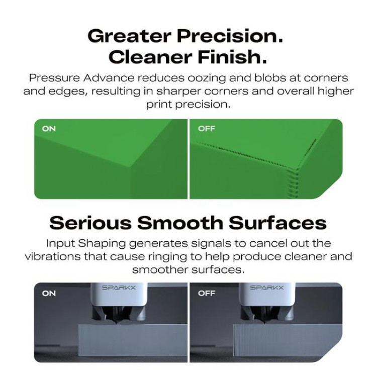 - Menggunakan direct drive extruder hasil print lebih presisi